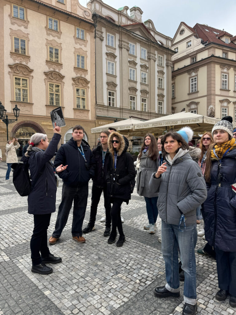 Our final day in Prague began with a guided tour through some of the city’s most significant WWII sites starting with the Pečekův Palác, the former Gestapo headquarters, where we learned about the brutal occupation and resistance efforts during the war. Next, we visited Wenceslas Square, a key location for both historical events and everyday life during the war. We then explored the crypt under the church, where the heroes of Operation Anthropoid—who assassinated Reinhard Heydrich—found their final resting place. The tour continued to the Old Town Square, where we reflected on the city’s wartime experiences and the resilience of its people. After the tour, we finalized our content creation and gathered to conclude the exchange and say goodbye to one another.