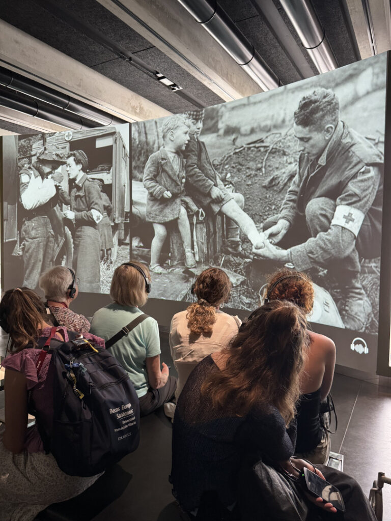 Inside a simulated landing craft of the Juno Beach Centre, we experienced the landing through an immersive film. The exhibition concluded with a moving film featuring the voices of Canadian soldiers and their families.