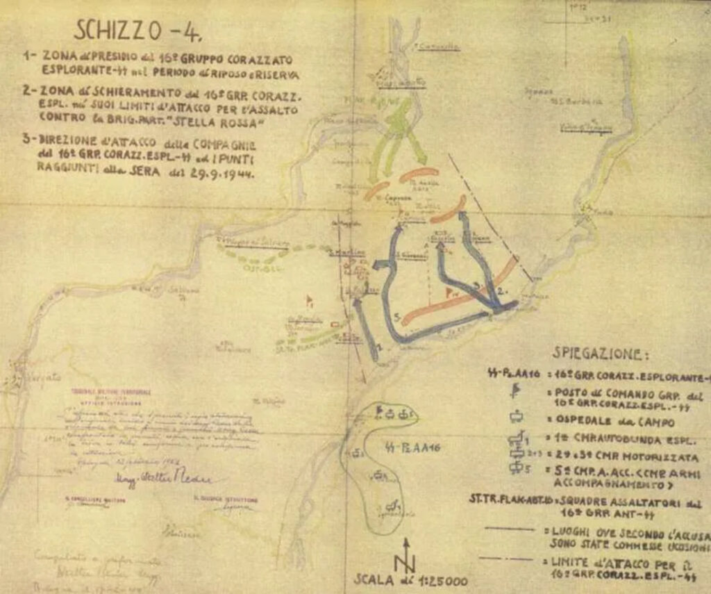 As part of a wider strategy used by the Nazi army in Italy in 1944 and 1945, German troops carried out a large military operation in the Monte Sole area. This was not a reprisal, but a planned action meant to spread terror among the civilian population and to destroy partisan resistance. Between 29 September and early October 1944, more than 700 civilians were killed in what is known as the Marzabotto or Monte Sole massacre. During the operation, the partisans fled into the surrounding woods. When the brigade’s commander, Mario Musolesi, known as “Lupo,” was captured and killed, the group lost its organization.